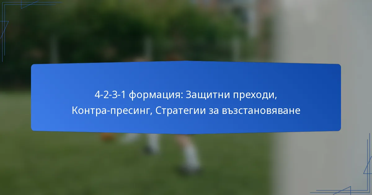 Формацията 4-2-3-1 включва четирима защитници, с двама централни защитници и двама фулбеци, предоставяйки силна основа за дефанзивна организация. Двамата дефанзивни полузащитници, често наричани двойна опора, седят пред защитата, предлагайки допълнителна защита и подкрепа. Тази подредба позволява бързи корекции в формацията по време на преходи, осигурявайки, че играчите могат да преминат в компактна формация, когато нямат владение на топката.