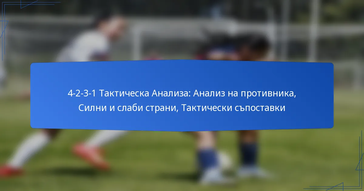 Формацията 4-2-3-1 акцентира на балансирана структура в средата на терена, като същевременно позволява гъвкавост в ролите на играчите. Ключовите тактически решения включват селекция на играчите, корекции по време на мача и стратегии, адаптирани към силните страни на противника.