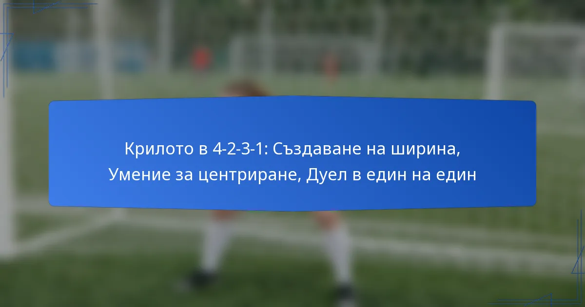 Крилото в схемата 4-2-3-1 е основно отговорно за осигуряване на ширина на атаката, създаване на пространство за съотборниците и доставяне на центрирания в наказателното поле. Тази роля е решаваща за разтягане на защитата на противника и улесняване на ефективни атакуващи действия.
